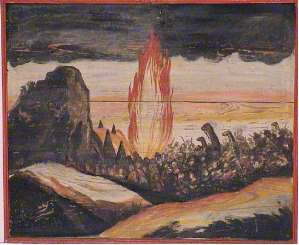 Eine Wolken- u. Feuersäule begleitet die Juden durch die Wüste.