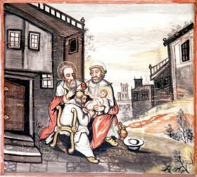 Da die Weisen hinweg gezogen waren, siehe, da erschien der Engel des Herrn dem Joseph im Traum, und sprach: Stehe auf und nimm das Kindlein und seine Mutter zu dir, und fleuch in Ägyptenland und bleib all da bis ich dir sage. Denn es ist fürhanden daß Herodes das Kindlein sucht, dasselbe umzubringen. Und er stand auf, und nahm das Kindlein und seine Mutter zu sich bei der Nacht, und entwich in Ägyptenland, und blieb all da bis nach dem Tode Herodis. (Matthäus 2,1-14).