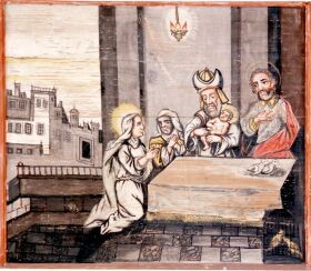 Simeon kam aus anregen des Geistes in den Tempel. Und da die Eltern das Kind Jesus in den Tempel brachten, daß sie für ihn täten, wie man pflegte nach dem Gesetz, da nahm er ihn auf seine Arme und lobete Gott und sprach: Herr nun lassest du deinen Diener in Friede fahren, wie du gesagt hast. Denn meine Augen haben deinen Heiland gesehen welchen du bereitet hast für alle Völker,etc. (Lukas 2,27-30).