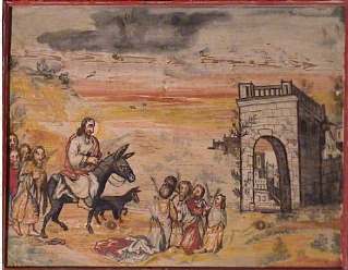 Da sie nun nähe bei Jerusalem kamen gen ... an den Oelberg, sandte Jesus seiner Jünger zwei und sprach zu Ihnen: Gehet hin in den Flecken, der vor Euch liegt und bald werdet ihr eine Eselin finden angebunden, u. ein Füllen bei ihr; löset sie auf und führt sie zu mir etc. Die Jünger gingen hin, u.taten wie ihnen Jesus befohlen hatte.etc. (Matthäus 21,1-7).