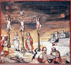 Es wurden aber auch hingeführt zwei andere Übeltäter, das sie mit ihm abgetan würden. Und als sie kamen an die Stätte, die da heisset Schedelstätt kreutzigten sie ihn daselbst und die Übeltäter mit ihm, einen zu rechten und einen zur linken. Jesus aber sprach: Vater vergib ihnen, dennn sie nicht, was sie tun. Und sie teilten seine Kleider und warfen das Los darum. Und das Volk stand, und sah zu. (Lukas 23,32-35
